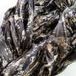 Handmade block print with black background and white elephant print. These ribbons come from a fair trade cooperative in India, where both men and women benefit from the program.