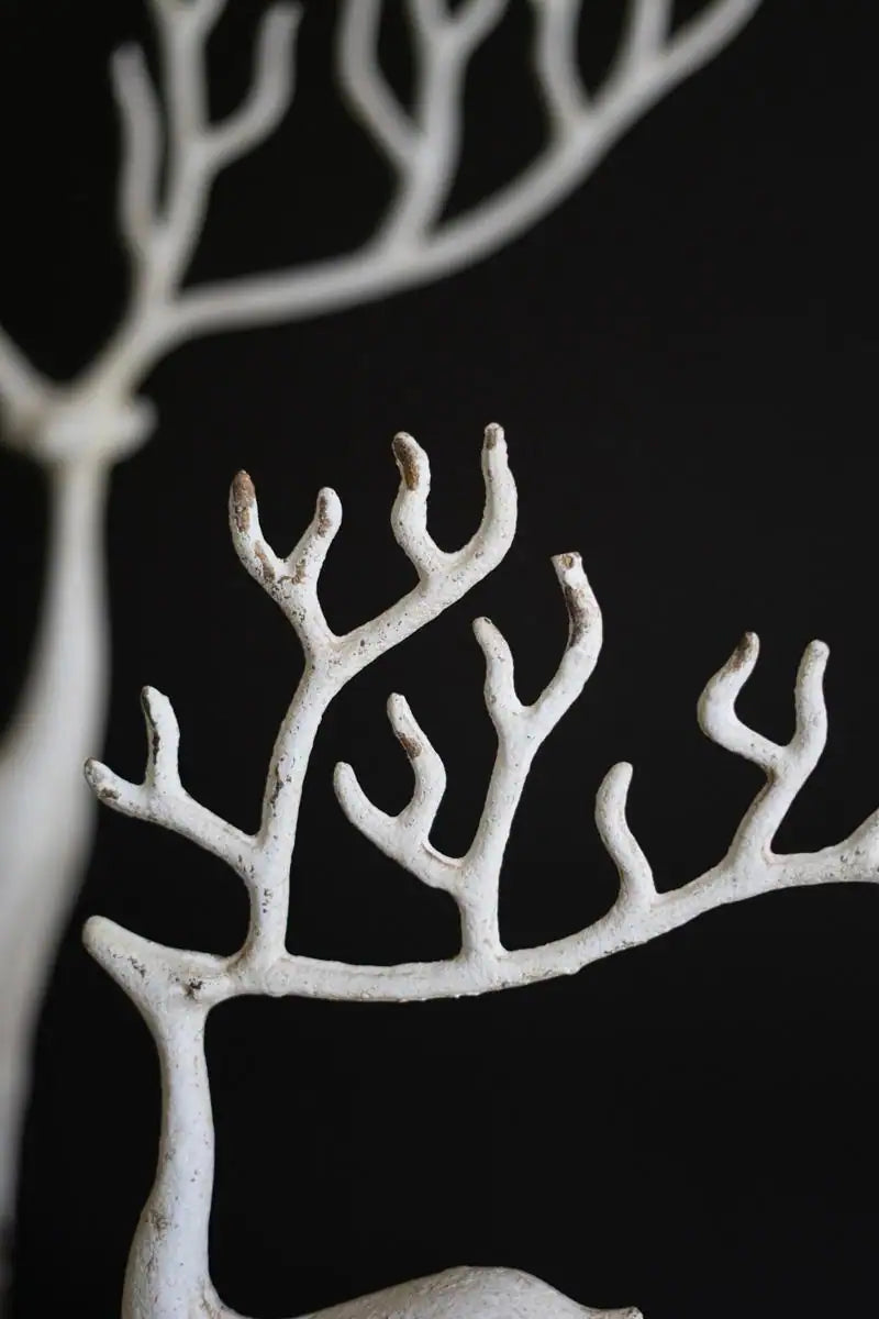 Make a bold statement with this set of two white cast iron deer. Standing at an impressive 25 inches tall, these majestic figures bring a touch of winter wonderland to your space. Their crisp white finish and elegant silhouettes make them perfect for creating a sophisticated holiday display in upscale homes or adding a touch of seasonal magic to high-end retail environments. Durable yet refined, these deer are sure to become cherished holiday staples for years to come.